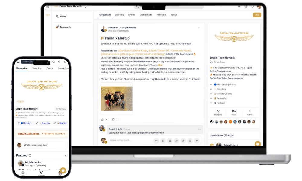 In most membership programs, there isn’t a place to access the whole community. That’s what we set out to differentiate Dream Team 100 from any other community you're part of.